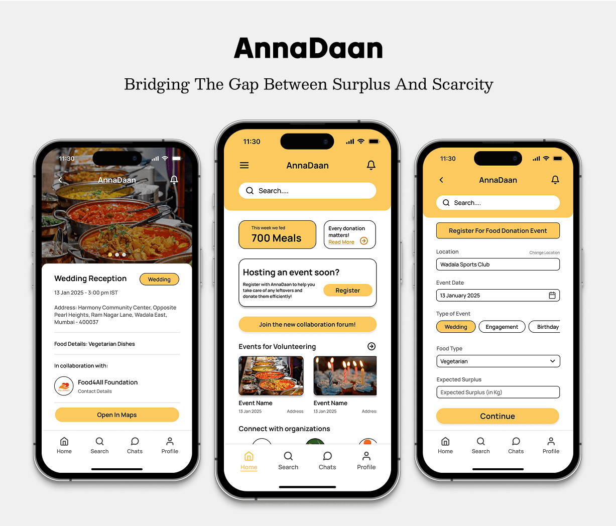 AnnaDaan, a mobile application that connects surplus food from restaurants and events with local NGOs and food banks.